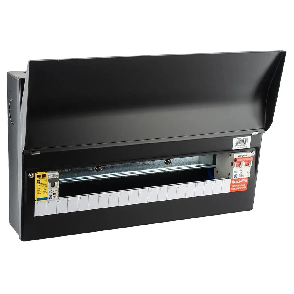 Lewden 10 Way RCBO Black Consumer Unit complete with pre-wired SPD Kit