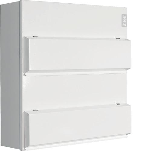 From Hager's 'Design 10' range, the VML11820 38 way dual row consumer unit is supplied empty with the 100A main switch and offers two banks of 18 and 20 ways which would commonly be loaded with RCBOs. Of course, if circuit design allows, you can use RCD and MCBs.