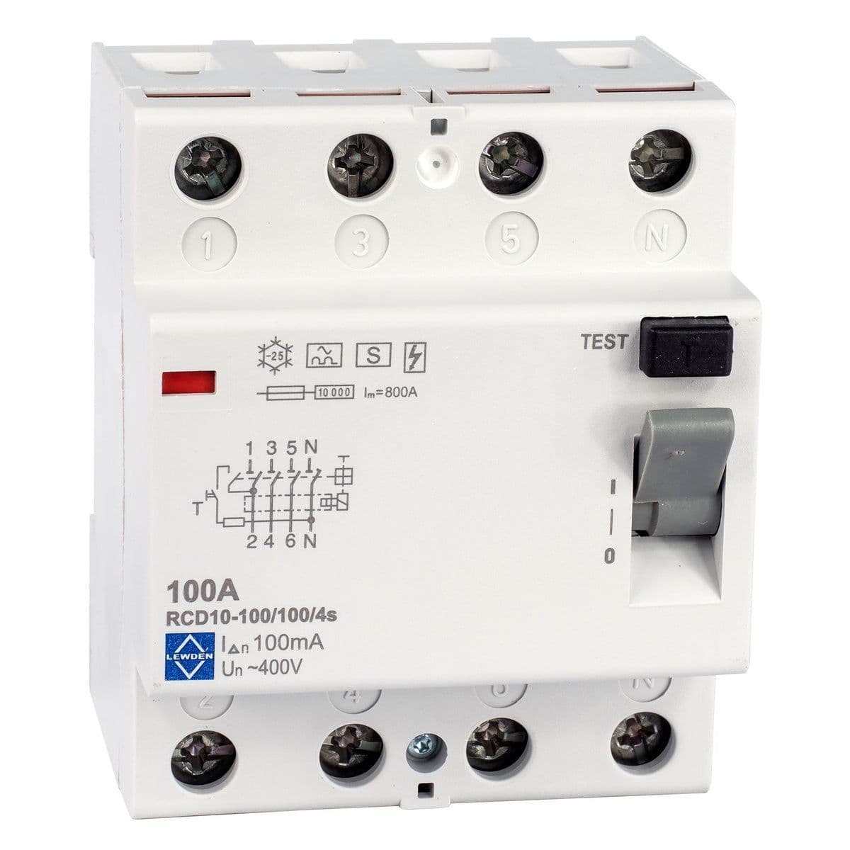 Lewden 100A RCCB 100mA 4P Time Delayed 10kA